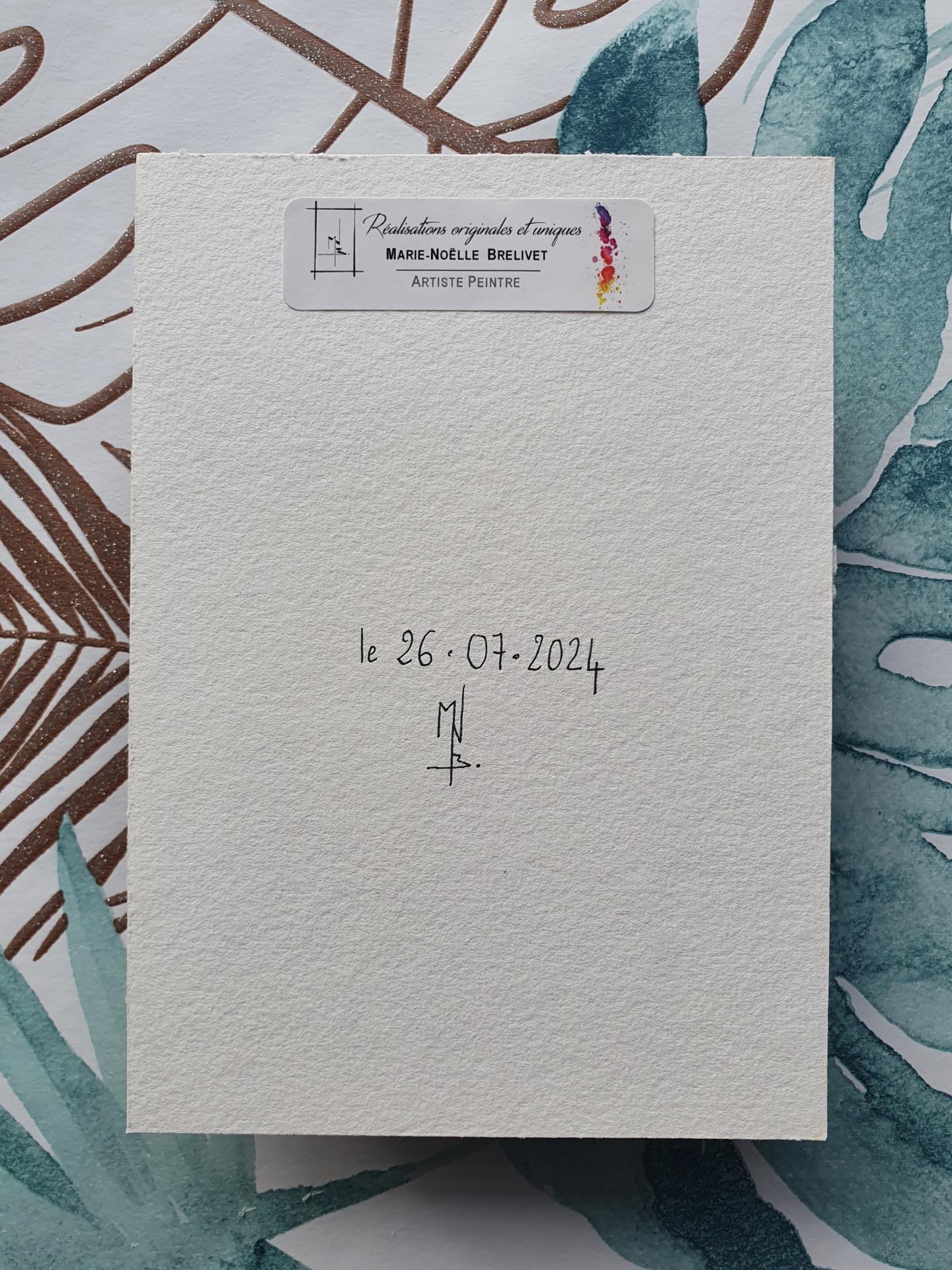 Peinture aquarelle et encre noire sur papier d'art blanc 300g