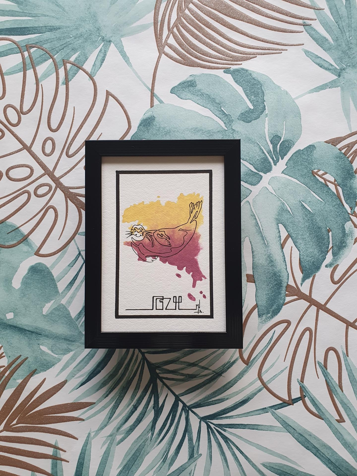Peinture aquarelle et encre noire sur papier d'art blanc 300g